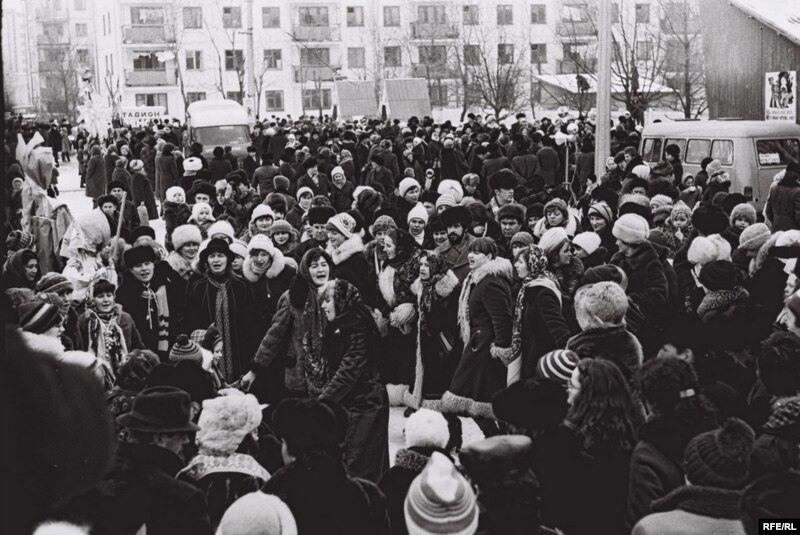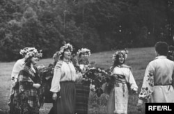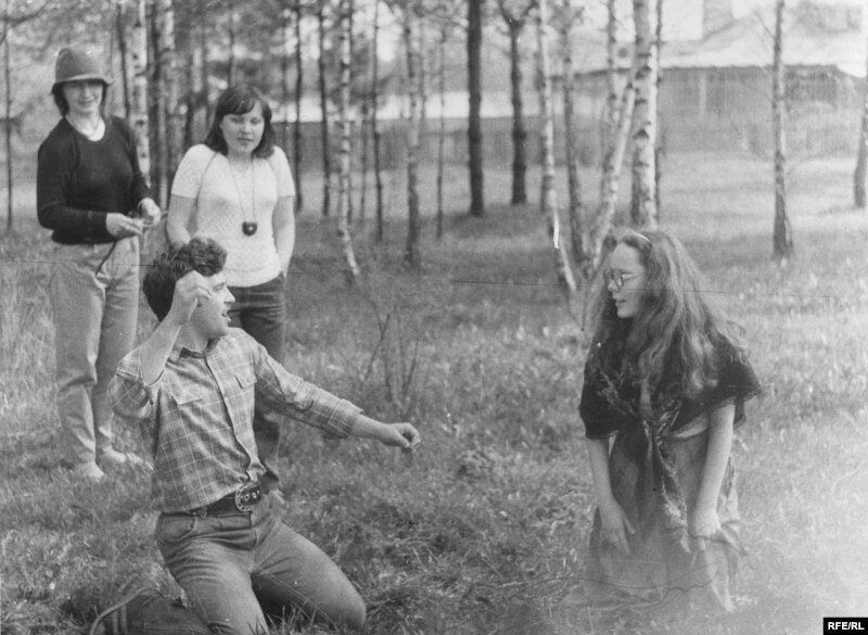 Лада на Гуканьні Вясны ў Заслаўі, 25 красавіка 1982 году. За ёю Таня Лаўрыновіч, Вэрця Лазоўская і Сяржук Цімохаў.