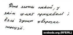 — Ён пісаў рукою. У яго такі почырк бісэрны. Я зьдзіўляюся. Рукапіс напісаны амаль бяз правак. Вельмі чытэльны і ясны.