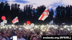У Бабруйску на агітацыйны пікет прэтэндэнткі на прэзыдэнцтва Сьвятланы Ціханоўскай і яе партнэрак па аб‘яднаным выбарчым штабе Веранікі Цапкалы і Марыі Калесьнікавай сабралася больш за 6000 чалавек.