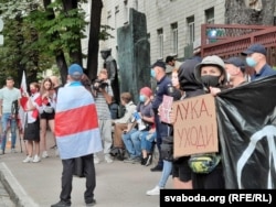 Амбасаду Беларусі ва Ўкраіне другі дзень ахоўваюць ва ўзмоцненым рэжыме — напярэдадні беларускія грамадзяне, якія не змаглі прагаласаваць, не разыходзіліся да позьняга вечара, а сёньня беларусы і ўкраінцы прыйшлі разам, каб патрабаваць спыніць гвалт і вызваліць усіх палітвязьняў.
