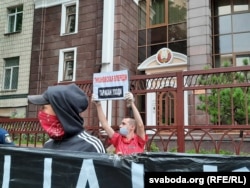 Каля амбасады асобна сабраліся і ўкраінскія анархісты. Яны ўсе былі ў балаклавах і трымалі вялікі чорны плякат з патрабаваньнем да Лукашэнкі сысьці. Пазьней, паводле паліцыі, адзін зь іх спрабаваў закідаць амбасаду яйкамі і яго паліцыянты жорстка затрымалі. Удзельнікі акцыі лічаць гэта правакацыяй, бо яны заклікаюць не парушаць законаў і не выказваць агрэсіі.