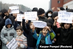 Мігранты правялі мітынг ля лягістычнага цэнтру ў «Брузгах». ФОТА