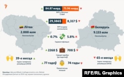 Зь інфаграфікі бачна, што Беларусь істотна саступае Літве паводле шэрагу сацыяльна-эканамічных паказьнікаў.